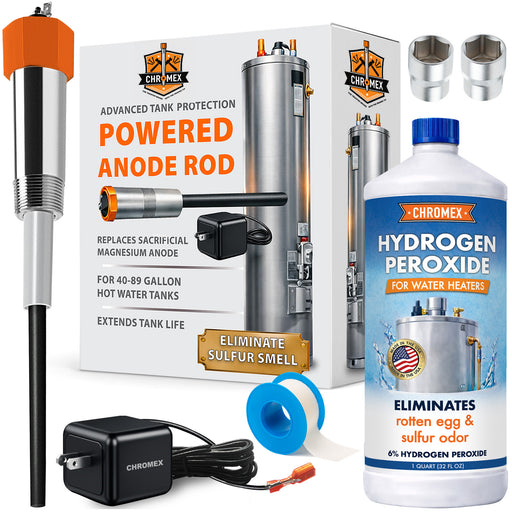 Powered Titanium Anode Rod Kit for Water Heater (40-89 Gallon) w/ 32 oz. Hydrogen Peroxide
